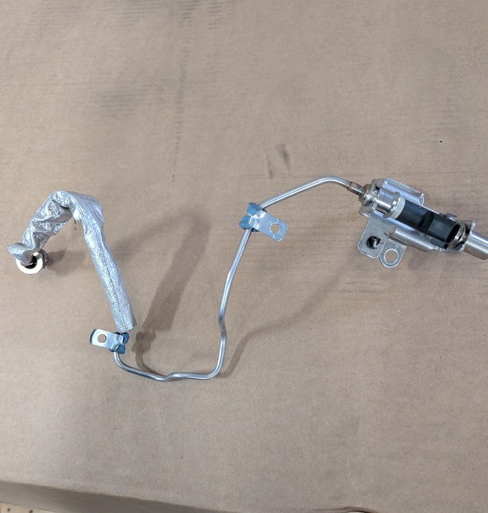 Our experience and training with Duramax diesel systems led us to suspect the hydrocarbon injector, also known as the 9th injector. This component is responsible for spraying a fine mist of diesel fuel into the exhaust stream to raise the temperature for regeneration.